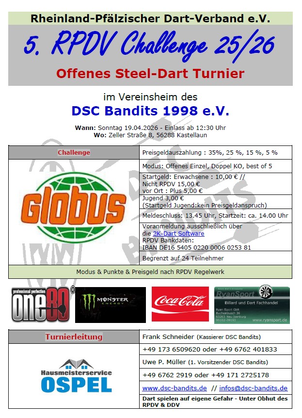 Fragen, Verbesserungsvorschläge und Anregungen bitte nur per Email an praesidium@rpdv.de.
